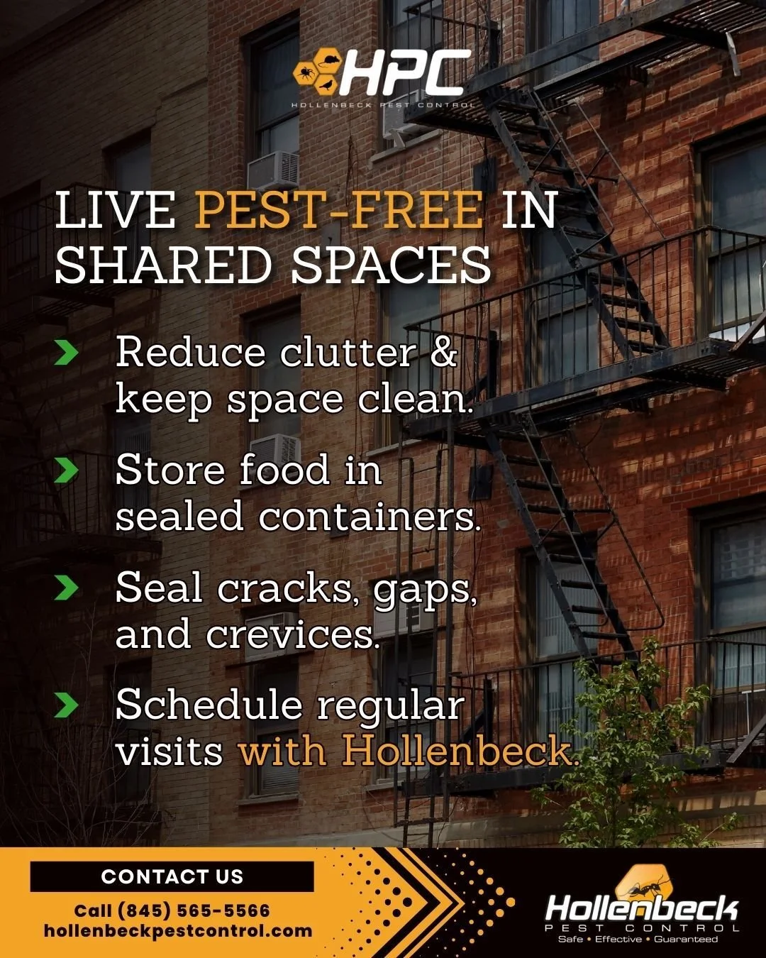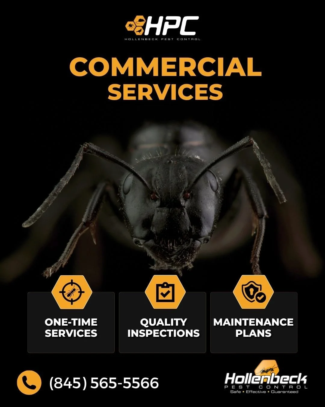 Hollenbeck Pest Control specializes in expert commercial pest control services for all types of local businesses. Hudson's Valley's finest, we have provided pest control to facilities of all shapes and sizes. Our trained exterminators know that pests can get into hard to reach and hidden spaces and will find the right solution for your problem. We practice Integrated Pest Management (IPM) and work closely with AIB and ASI inspectors.